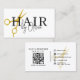 Ett elegant svart och vitt affärskort med ett modernt guld-saxeraccent, fet typografi och skannerbar QR-kod på baksidan för omedelbar bokning eller social-media. Perfekt för hårstilister och skönhetsivrande professioneller som vill ha ett tidlöst, högkontrast- och lyxinspirerat kort som utmärker sig med ett polerat boutiskt utseende.