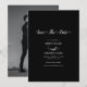 En vacker svart-vit kalligrafi-design med parets foto. En modern bröllopsfotodesign med enkla minimalistiska element. En idealisk modern bröllops inbjudan design för alla som älskar script kalligrafi, svart-vita designs och fotobild bröllops pappersvaror. Matchande bröllopsinbjudningar och andra pappersvaror finns också tillgängliga.