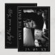 Modern svart-vit skriptfoto Spara datumet. Skapa ett djärvt första intryck med detta svart-vita kort för att spara datumet, med modern skrifttypografi och en fullständig fotolayout. Minimalistiskt men ändå romantiskt, är det det perfekta valet för moderna bröllop med en elegant, redaktionell känsla.