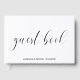 Typografi bröllopsfest gästbok med titeln "gästbok" i svart kalligrafi och ditt namn och evenemangstitel nedan, mot en vit bakgrund. Din information finns också på ryggen. Ryggen och baksidan är svarta och kan ändras till valfri färg som du önskar. Den enkla och minimala layouten och massor av öppet utrymme ger denna design en modern känsla och den kalligrafiska stilen ger den en chic twist. Visa denna gästbok på ditt soffbord eller bokhylla och ta ut den och läs kärleksmeddelandena när du vill minnas firandet med dina tjejer innan din speciella dag.