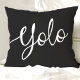 Lägg till ett djärvt påstående till din heminredning med denna stilrena "YOLO"-kuddöverdrag. Med en slank svart bakgrund och elegant vit script-typografi är denna kudde perfekt för moderna utrymmen eller som en lekfull accent i vilket rum som helst. En bra påminnelse om att leva livet till fullo, denna kudde kombinerar modern minimalism med ett kraftfullt budskap, vilket gör den till ett måste för alla vardagsrum.