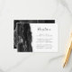Den lämnat kant i eleganten har ett modernt mottagningskort för bröllopsresor med en svart vattenfärg som agerade i gräns som trimmas med faux silver glitter. Rubriken är i handskriftsskript, med anpassadet nedan i färgkodsteckensnittet för kol-grått på vit bakgrund. Den omvända sidan har en matchande svartvit och silver agate-design.