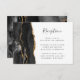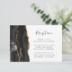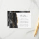 Den lämnat kant i eleganten har ett modernt mottagningskort för bröllopsresor med en svart vattenfärg som agerade i gräns som trimmas med faux guld glitter. Rubriken är i handskriftsskript, med anpassadet nedan i färgkodsteckensnittet för kol-grått på vit bakgrund. Den omvända sidan har en matchande svartvit och guld agate-design.