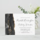 Den här elegantens lämnat kant har en modern bröllopsinbjudan med en svart vattenfärg som agerade i gräns med faux guld glitter. Anpassadet kombinerar handskrift, tryckplåt och kursivt typsnitt i grått i kol mot vit bakgrund. Den omvända sidan har en matchande svartvit och guld agate-design.