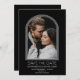Informera dina vänner och nära vänner om ditt framtida bröllop med det här moderna fotosvarta och vita anpassningsbarna bröllop spara-the-date-kortet.