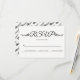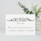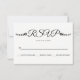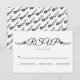 Modern svarskort för svart och vit bröllop OSA och blommor i blommigt. Texten visas i ett kursivt skript med stil typografi och två små svarta blommor med löv. På baksidan finns en blommigt svart och vitt mönster.