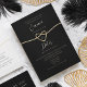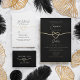 Inbjudan dina kära i stil med den här moderna eleganten svart och guld bröllopsinbjudan. Med ett romantiskt guld-rep-hjärta, elegant svart bakgrund och kalligrafi av snyggt blandar den här designen klassiskt elegans med en contemporary kant. Perfekt för par som vill ha ett sofistikerat men romantiskt utseende för sin speciella dag, fullt anpassade med dina bröllop-detaljer.