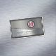 Modern Monogram-LOGOTYP i Metall med Affärskortet för Professionell i bakgrunden i Silver Metall.