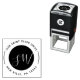 Modern, svart och vit, monogramsskript, självtryckande frimärke. Anpassa frimärke med namn och text.