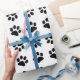 Mönster visar silhuetter av svart katt tassar på vit bakgrund. Den här contemporaryn lägger mönster till en underbar, modern beröring till en födelsedag, jul eller annan helgdag!