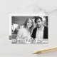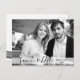 Modern svart och vit Spara vår Bröllop-vykortsSnyggt och chic Modern svart och vit Spara vårt fotoannonseringskort för datumskript med vitt, handritat rand. Den här designen är elegant och trendig i både design och typografi. Kommer med matchande tillbehör: gå till www.sparklenglitter.com