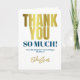 Ett slående blått och modernt tackkort från guld. Detta speciella tackkort består av djärv och modern typografi.