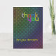 Ett tack för ditt donationskort med en mycket modern känsla. Upprepade cirklar utgör en intressant bakgrund för abstrakten. Texten är i ett teckensnitt som matchar och kompletterar cirklarna.