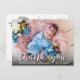 Announce Birth från baby och tack till er familj och vänner för deras gåvor och önskemål med detta söta födelsemeddelande tack för vykort. Utformning med 1 bild av baby, ett vitt tack som du täcker över skript med handskrivet trendig och baby namn och födelsedatum på framsidan. Lägg till mer information, t.ex. födelsestatistik, på baksidan av vykortet. Kontakta mig om du behöver hjälp med den här designen.