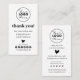 Vi presenterar vår moderna Tack för att köpa Affärskort för små varumärken, designat för att hjälpa ditt småföretag att lämna ett varaktigt intryck. Det här kortet har en enkel och modern utformning, med ett hjärta och ord "Tack for Your Order" i ett minimalistiskt svartvit färg. Kortet innehåller även mediehandtag och logotyp i social, och skapar det enkelt för kunder att ansluta till onlinen. Perfekt för att ta med dessa kort i förpackningar eller dela ut dem personligen är ett underbart sätt att visa din uppskattning för dina kunder och samtidigt marknadsföra ditt varumärke. Beställ nu och gör en stor insats med en liten gest.