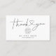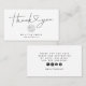 Modern och minimalistisk text för små företag som innehåller en handskriven text som säger "tack" med ett hjärta i mitten. Du kan lägga till din logotyp och ett enkelt meddelande på baksidan tillsammans med medie- och webbplatsinformationen i social.