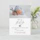 Ett modernt kalligrafskript för nyfödda pojke med ett skräddarsytt foto från baby är den idealiska tacksamma känslan efter babyduschen party för vänner och familj. Sätt enkelt in dina uppgifter för att göra dem till egna.