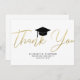 Skicka ett modernt tackkort till din familj och dina vänner för studenten. Den här typografin illustrerar en svart studentmössa och ett diplom med ett modernt faux guld-skript som lyder. "Tack" i handskript med ditt namn, din skola och klass/år nedan för att anpassa dig. Kortets baksida innehåller ett tackmeddelande och namnteckning att du kan anpassa eller ta bort. Designad av konstnären ©Susan Coffey.