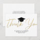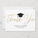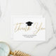 Skicka ett modernt tackkort till din familj och dina vänner för studenten. Den här typografin illustrerar en svart studentmössa och ett diplom med ett modernt faux guld-skript som lyder. "Tack" i handskript med ditt namn, din skola och klass/år nedan för att anpassa dig. Kortets baksida innehåller ett tackmeddelande och namnteckning att du kan anpassa eller ta bort. Designad av konstnären ©Susan Coffey.