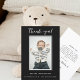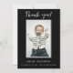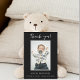 Snyggten tackar dig för det moderna fotokortet med fotot från anpassningsbar baby för att tacka familj och vänner för deras närvaro, gåvor och stöd när det gäller att välkomna din lilla födelse. Utformningen är modern och har en dubbla vit tunn ram mot svart bakgrund och snyggt modern vit text. På baksidan av kortet, under "tack," i ord är anpassadet ett tack för att du kan ta bort text som du kan välja att ta bort. Dina namnteckning finns vid grund i modern kalligrafi. Tryck på anpassningsknappen för att lägga till information och ersätta bilden.