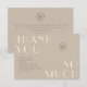 Modern Tack med Logotyp kort. Ett minimalistiskt tack för kortet har en ren utformning med ett typsnitt för eleganten. Kortet är typiskt designat med ett neutralt färg-system och ett tacksamhetsbudskap som uttrycks på ett koncist och uppriktigt sätt. Specifika detaljer kan göra budskapet mer personligt och uttrycka tacksamhet för mottagarens vänlighet eller stöd.