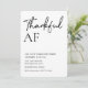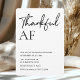 Fördjupa skrattet runt bordet denna säsong med denna roliga inbjudan till Thanksgiving-middag med den djärva och fräcka frasen ”Tacksam AF”. Med en ren minimalistisk layout och modern typsnittsstil balanserar denna design perfekt humor med stil.