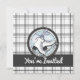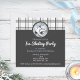 Designen har ett par skridskor över en snöflinga-kam och en off-white tartanmönstrad bakgrund. Denna eleganta vintersportdesign fungerar som söta moderna och unika födelsedags- eller julfestinbjudningar.
