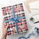 Modern Tartan Red Blommönster Presentpapper