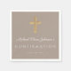 Personalized Taupe Script Religious Cross Boy Confirmation Napkins.