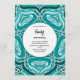 Ge din fest en modern konstnärlig energi med denna djärva tealabstrakta mönster födelsedagsinbjudan. Slående symmetrisk mandelstil design som blandar flytande teal, turkos och vita former för en livfull och modern look.
