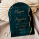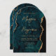 Modern Teal Blue Agate Script Arch Bröllop Inbjudningar