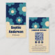 Modern Teal Blue Retro Floral Pattern with QR Code Visitkort
