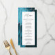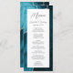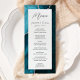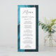 Den här eleganten har den moderna bröllop-menyn en vattenfärgsblå agatbakgrund som trimmas med silver faux glitter. Texten visas i elegant charcol grått handskrift och sans serif typsnitt på en vit rektangel. Den agate-designen upprepas på motsatt sida.