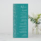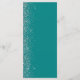 Den moderna bröllop-menyn på den lämnat kant i eleganten har en silver faux glitter-design. Anpassadet kombinerar handskrift, tryckplåt och kursivt typsnitt med handskrift av silver grått på en helblå bakgrund. Den omvända sidan har en passande teal- och silver glitter-design.