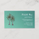 Det moderna affärskortet med en tropisk händelseplanerare, med handflatan träd teckning på trendigets tealbakgrund i grönten. Med vit typografisk text anpassar du dig med egen namn eller egen titel. Ett professionell sätt att få ut ord om ditt företag.