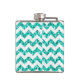 Modern Teal Glitter Chevron Zig Rand Fabric Print Mönster Monogram Initial Whiskey Flask Personlig