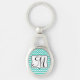 Modern Teal Glitter Chevron Zig Zag Rand Monogram Initial Nyckelring