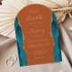 Modern Teal Guld Agate Burnt Orange Arch Bröllop Inbjudningar