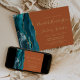 Modern Teal Guld Agate Burnt Orange Bröllop Inbjudningar
