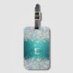 Modern Teal Holography Faux Glitter Monogram Bagagebricka