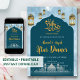 Host a memorable breaking of the fast with this elegant Iftar invitation. Featuring a sophisticated teal blue arch, a glowing mosque silhouette, and intricate hanging gold lanterns against a watercolor sky background. Perfect for Ramadan gatherings, community Iftars, or Eid celebrations. Easily customize the text to include your event details.