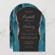 Modern Teal Rose Gold Agate Dark Arch Wedding Inbjudningar