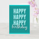 Denna enkla, moderna testsatatform är nykter och ren tittar, men det är säkert att man gör en påstående. Den ljusa tealen med lycklig lycklig grattis på födelsedagen på framsidan. "Bästa önskemål för en underbar dag". Det här kortet är perfekt för vänner, medarbetare och familj på deras födelsedag.