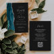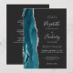 Modern Teal Silver Agate Mörk QR Code Bröllop Inbjudningar