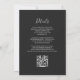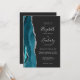 Den moderna bröllopsinbjudan från elegantens lämnat kant har en tårblått vattenfärgsagat gräns som trimmas med faux silver glitter. Anpassadet kombinerar handskrift, tryckplåt och kursivt typsnitt med silver grått mot svart bakgrund. På baksidan finns utrymme för bröllop-information på en solid off-black-bakgrund, tillsammans med en QR-kodsgäst som kan söka på webbplatsen och OSAN, vilket sparar kostnaderna för utskrift och utskick av separat OSA kort.