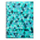 This eye-catching notebook features a modern geometric pattern composed of a dynamic mosaic of triangles. The design is rendered in a vibrant palette of teal, turquoise, and deep blue shades, creating a cool and energetic look. This stylish, abstract pattern is perfect for anyone who loves bold color and contemporary aesthetics. Use this notebook for work, school, journaling, or as a chic accessory to brighten up your desk space.
