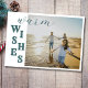 Modern Teal Warm Wishes Two Beach Family Photo Julkort
