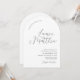 Vi presenterar firande i bröllop med tidlös elegans med vår inbjudan till Arch Shaped Wedding. Denna mycket skickliga inbjudan är designad för par som uppskattar enkelhetens och sofistikeringens skönhet. Den unika ljussilhuetten erbjuder en fantastisk och contemporary närvaro som gör att den uppmärksammas och fungerar som en omhuldad keepy för dina gäster. Den skarpa vita bakgrunden ger en elegant- och klassduk som kompletterar den minimalistiska utformningen och förbättrar den övergripande estetiska bilden. Valet av svart text tillför en aning klassisk sofistikering, vilket garanterar att dina uppgifter om bröllop presenteras på ett tydligt sätt och stil. Kärnan i den här utformningen är den eleganta skriven namn från bruden och brudgummen. Det här teckensnittsvalet ger en personlig och intim beröring och skapar namn kontaktpunkten för inbjudan med underskattad respit. Den här inbjudan är perfekt för en rad olika teman i bröllop, från chic City firande till intima trädgårdssammankomster och ser till att den kompletterar alla stil och tillför lite contemporary elegans. Inbjudan dina kära för att fira din speciella dag med vår Arch Shaped Wedding-inbjudan, där enkelhet i eleganten möter tidlös klass. Låt denna vackra inbjudan ange tonen för ett bröllop fyllt med kärlek, glädje och oförglömliga minnen.