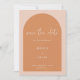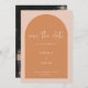 Ett enkelt modernt bröllop spara datum med terracotta-båge på rosa. "spara datumet" står i ett vitt handskrivet stil-teckensnitt. Anpassa med dina detaljer med en modern layout med vitt teckensnitt och lägg till ditt favoritfoto på motsatt sida.