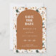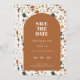 Modern Terracotta Arch Terrazzo räddade datumkortet Modern och minimalist i stil terrazzo-brickan med bröllop spara datum-kort som innehåller ett mönster med terracotta-spektrum och en terracotta-färgad i ram. Den här terrazzo-parken sparar datumet på ett sätt som passar perfekt för någon som tittar för en modern besparing av datumkortsdesignen.